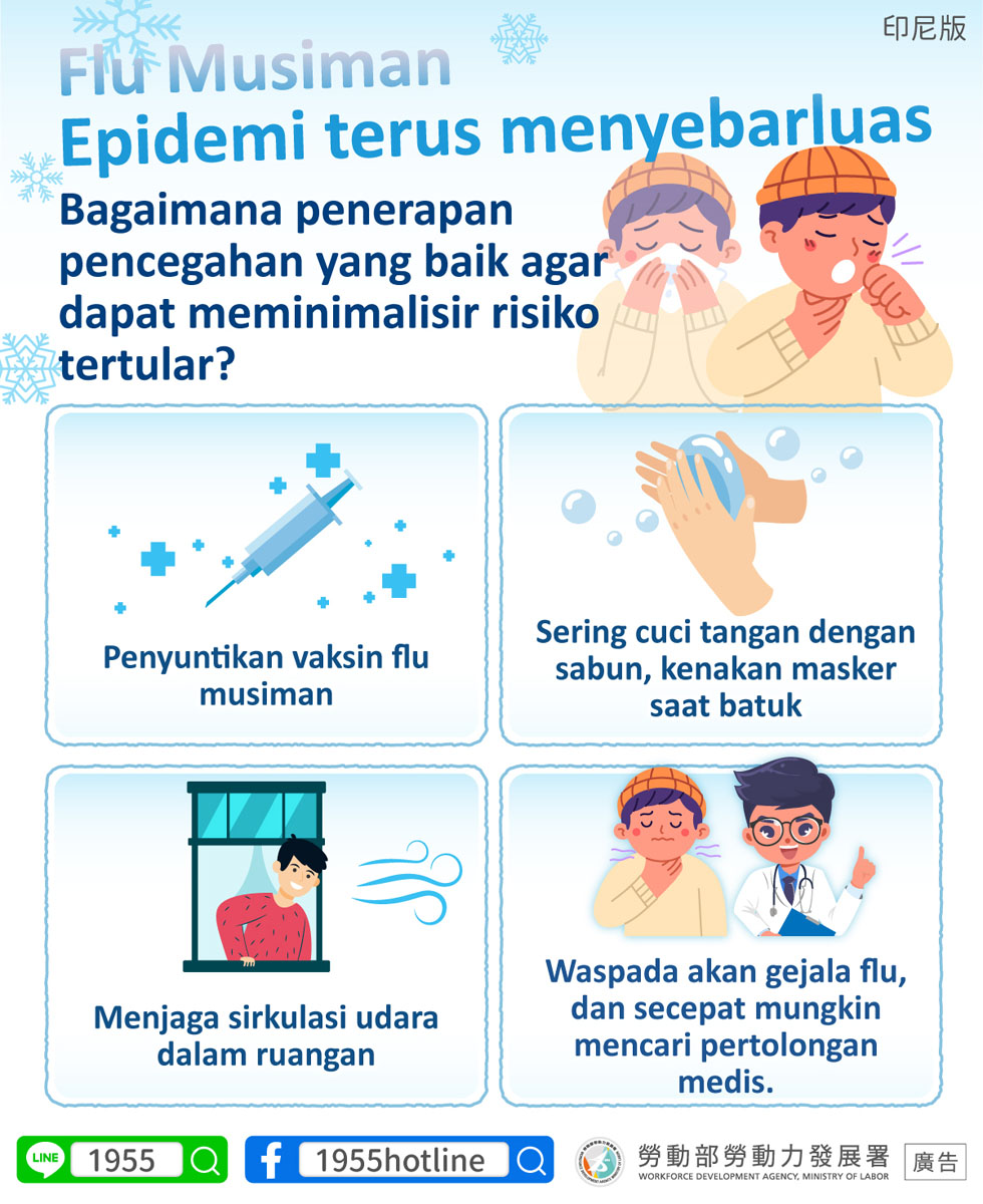 •Be aware of influenza symptoms and seek medical treatment as soon as possible